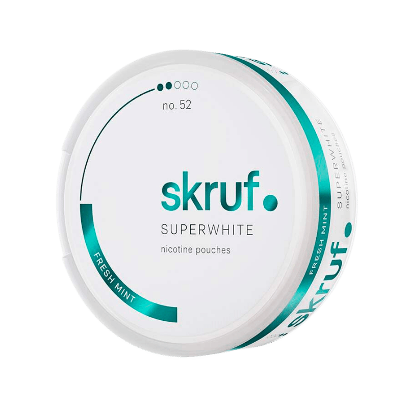 Elevate your nicotine enjoyment with Skruf Fresh Mint no. 52 Superwhite Nicotine Pouches, order now!